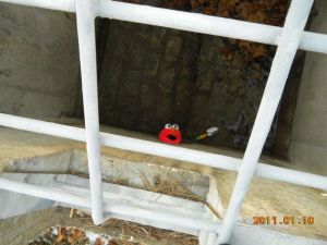 We see a lot of strange things stuck in pipes and occasionally come across animals inside of structures during maintenance and inspection visits. As you would imagine, it’s always a little un-nerving looking into a structure and seeing a set of eyes peering back at you. Especially when they big googly plastic eyes that are attached to a furry little red body!