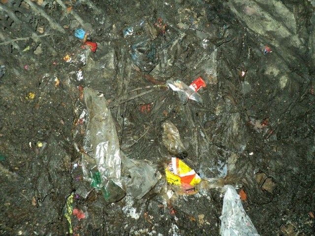 Unfortunately, we see lots of plastic bag pollution during our inspections and maintenance. Many parking lots are full of discarded plastic bags and bottles which find their way into the stormwater management system. These sites have inlets stuffed with trash and plastic and often the stormwater facilities are littered with bags and other trash.