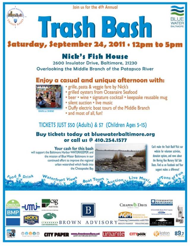 Join us for the upcoming Trash Bash at Nick’s Fish House in Baltimore. It is a great time, fantastic food, and the event supports a good cause. Purchase tickets here.
