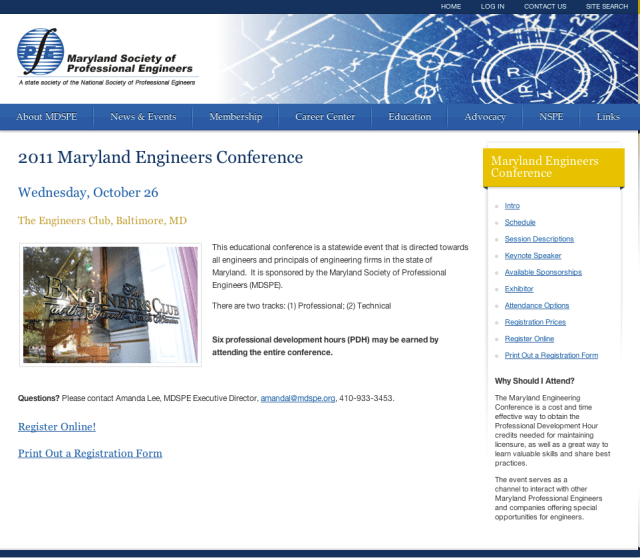 We will have a booth at the 2011 Maryland Engineers Conference. Come visit us!